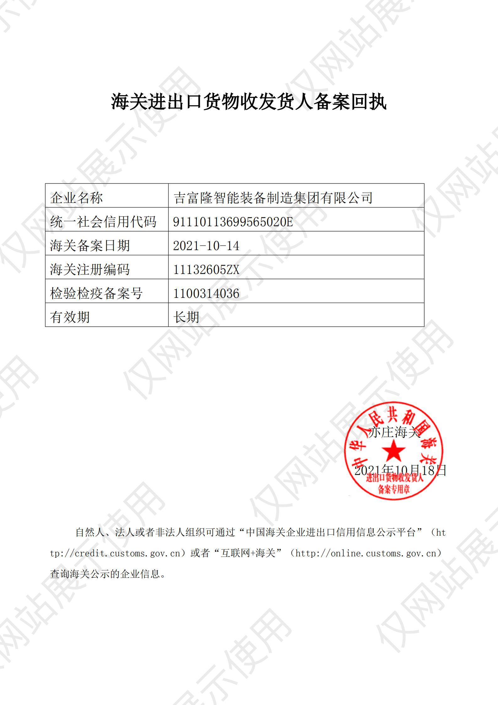 吉富隆智能装备制造集团有限公司始建于2010年,是一家集自主研发、高端制造、营销服务为一体的现代化集团公司。集团总部坐落于首都北京经济技术开发区,交通十分便利。集团在北京、河北、安徽等地设有生产基地。注册资金10560万元。